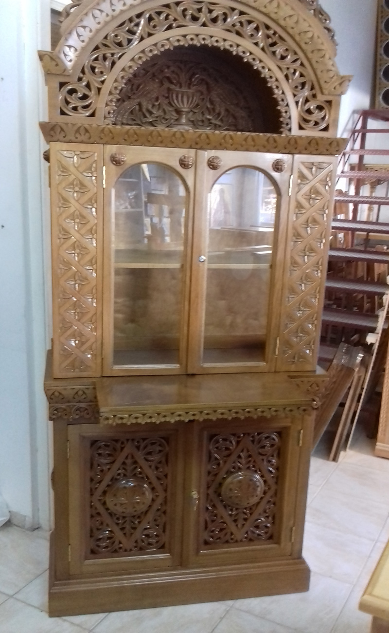 Ντουλάπα με χειροποίητα σκαλίσματα και γυαλί στις θύρες