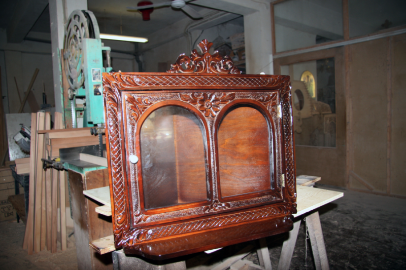 Ξύλινο χειροποίητο εικονοστάσι σε σκούρο χρώμα