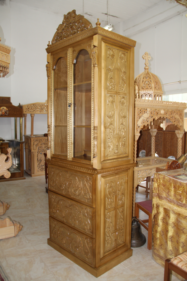 Επιδαπέδια βιτρίνα με χειροποίητο βυζαντινό σκάλισμα