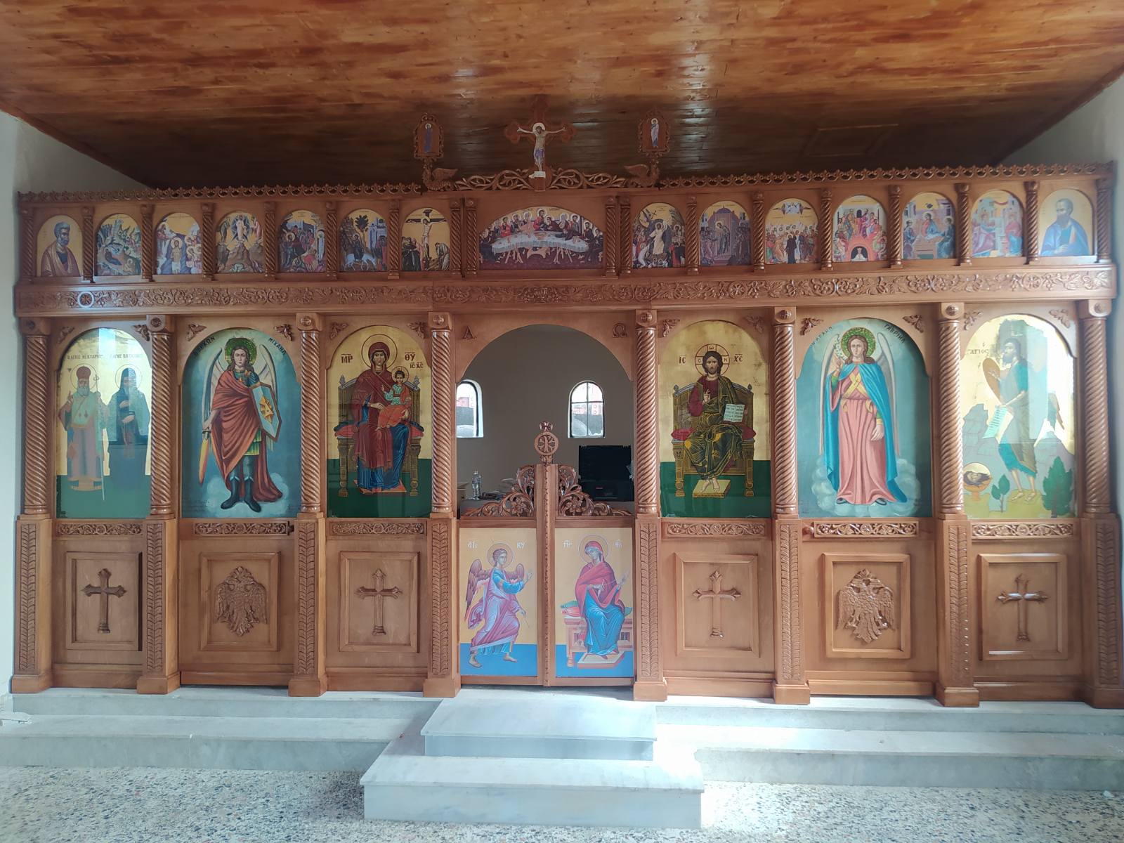 Ξυλόγλυπτο τέμπλο βυζαντινού ρυθμού με σκάλισμα από ξύλο φλαμούρι και συμήδας.