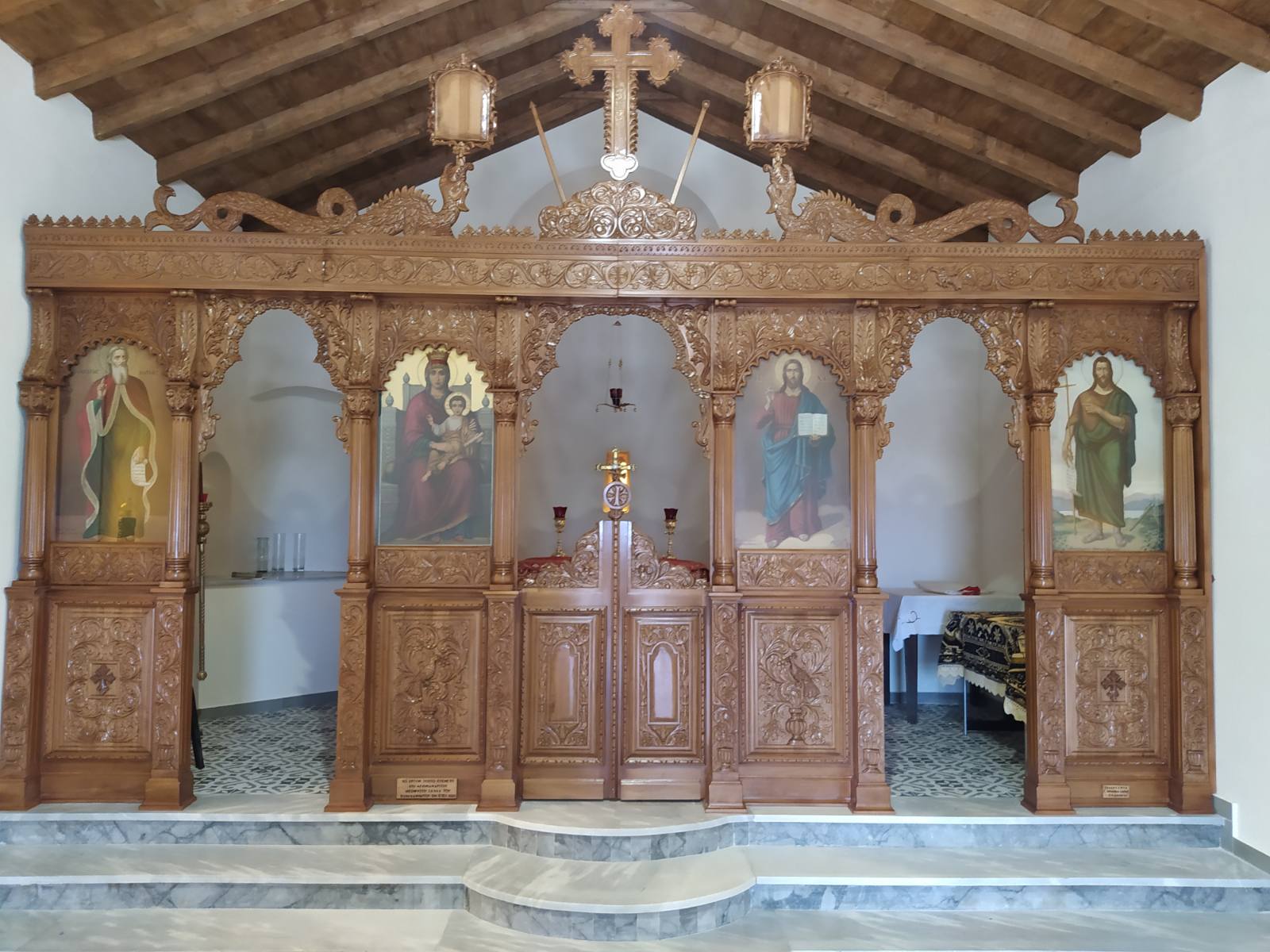 Ξυλόγλυπτο τέμπλο βυζαντινού ρυθμού με σκάλισμα από ξύλο φλαμούρι και συμήδας.